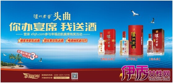 畅享中国60年的泸州老窖头曲,让时间见证了价值,在白酒回归理性消费的时代,泸州老窖头曲力求把消费价值及利益体验做到极致,连续三年开展“幸福启航”10万瓶美酒馈赠活动。同时,针对宴席消费,推出“你办宴席我送酒”活动: “婚宴寿宴我送酒”、“朋友聚会我送酒”、“喝酒抽奖游马代”。让办宴席、朋友聚会都可以免费喝泸州老窖头曲赠酒体验,参见线上线下活动,还可以免费赢得6天5晚马尔代夫旅游!