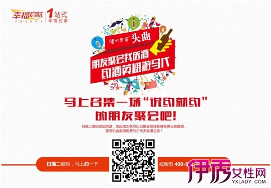 亲朋好友聚会,喝杯头曲,更尽兴!扫二维码或到yj.xfqh.com参加“朋友聚会我送酒”活动,发起约酒聚会,召集好友报名,就能领取精美头曲赠酒。全国范围均可参与约酒,约酒人还有机会赢得马尔代夫旅游大奖!