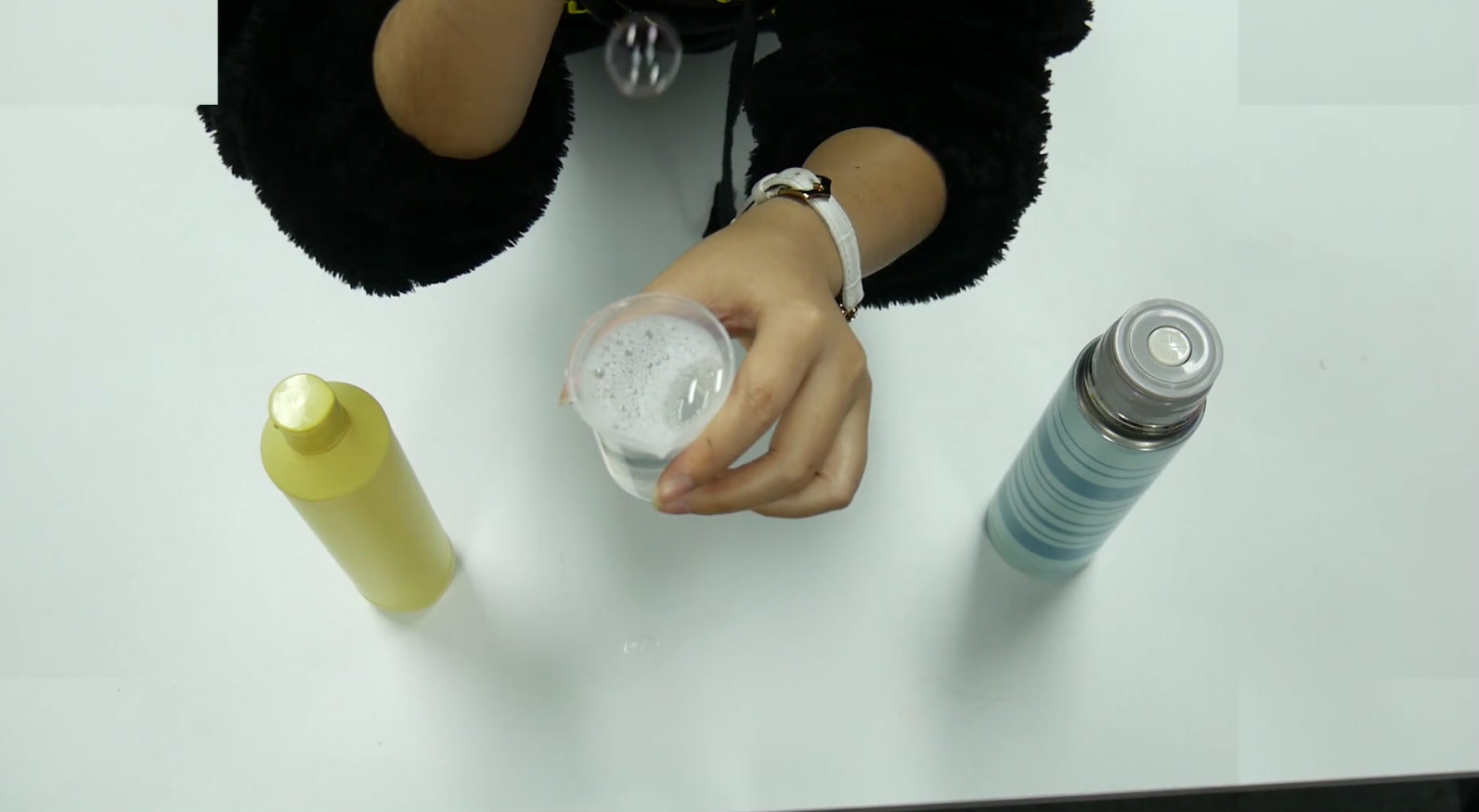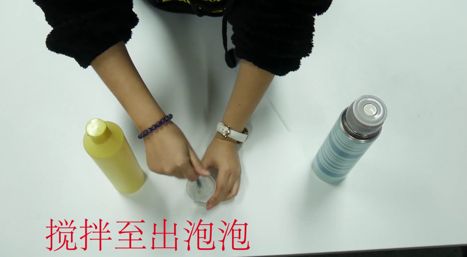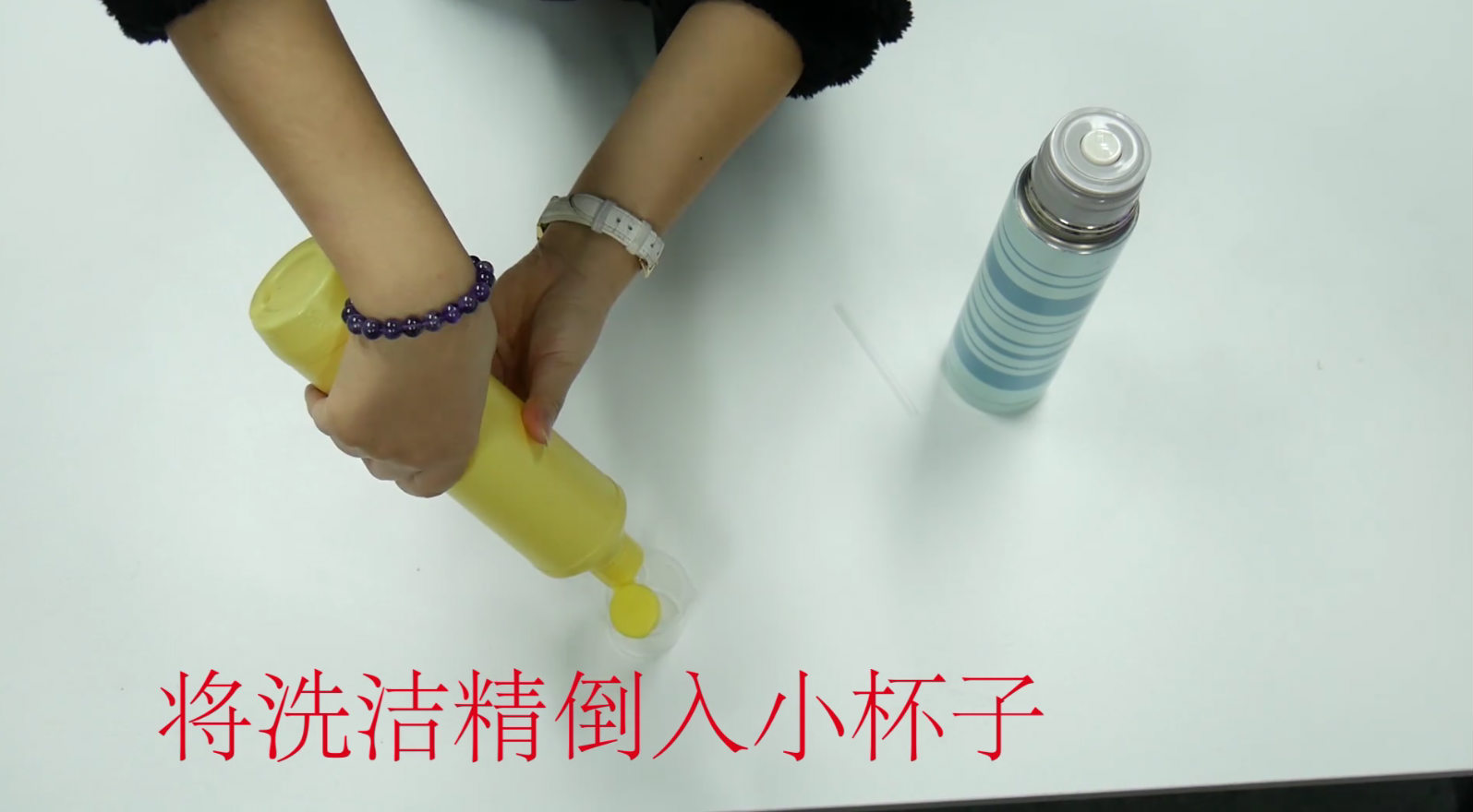 准备热水、洗洁精、杯子、吸管和一根棍子搅拌。