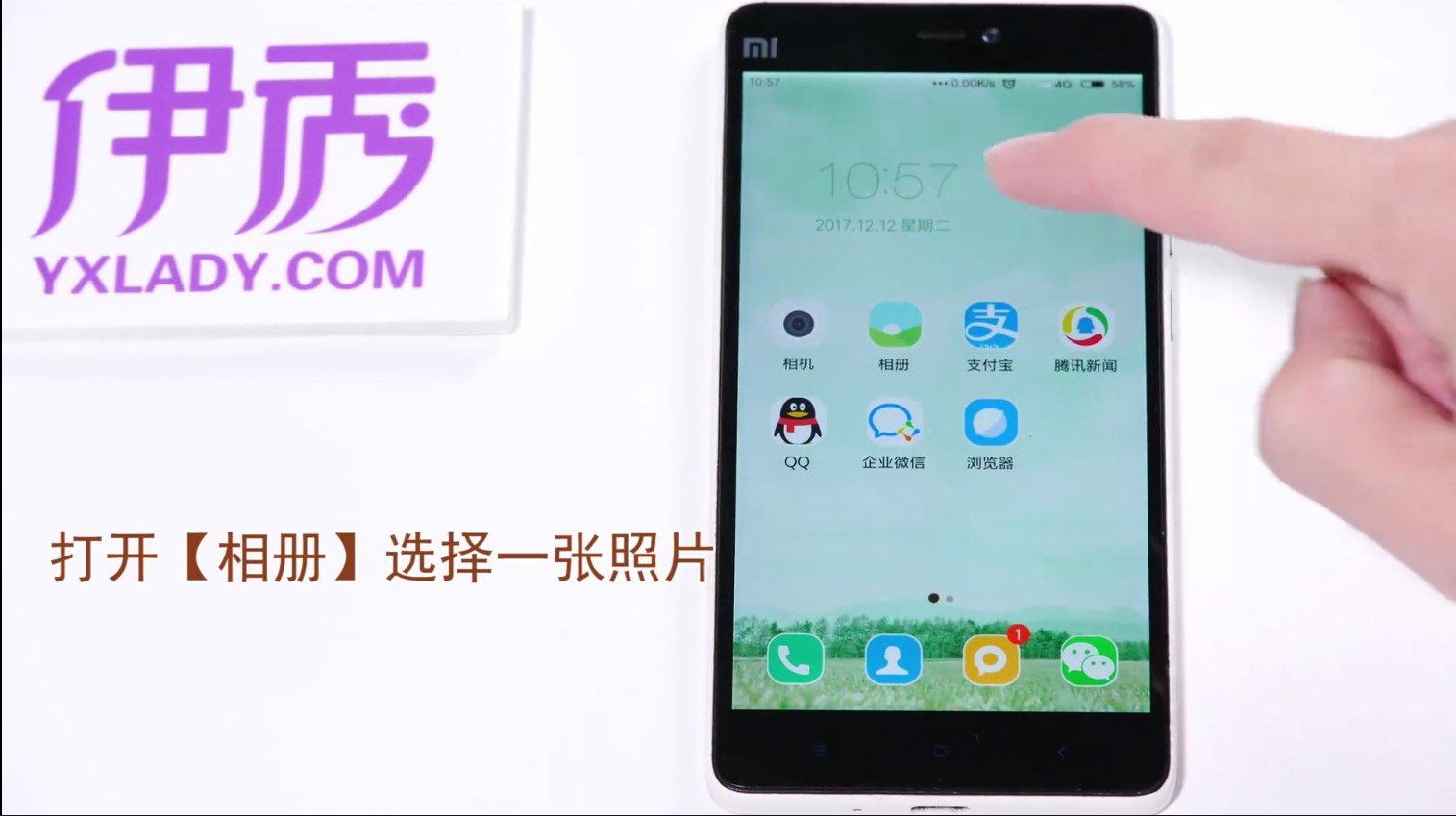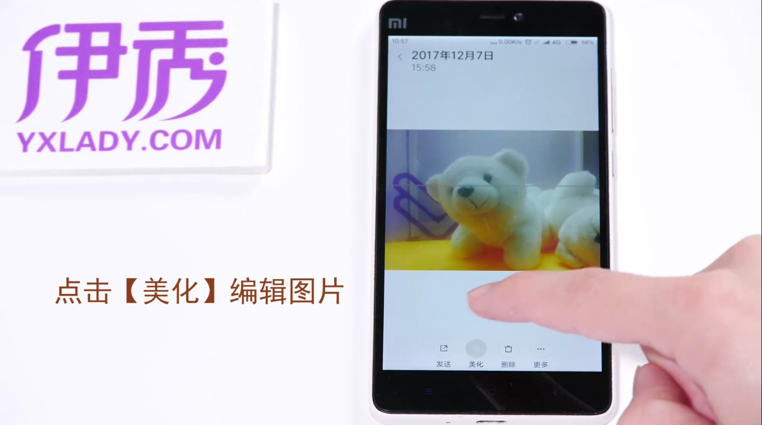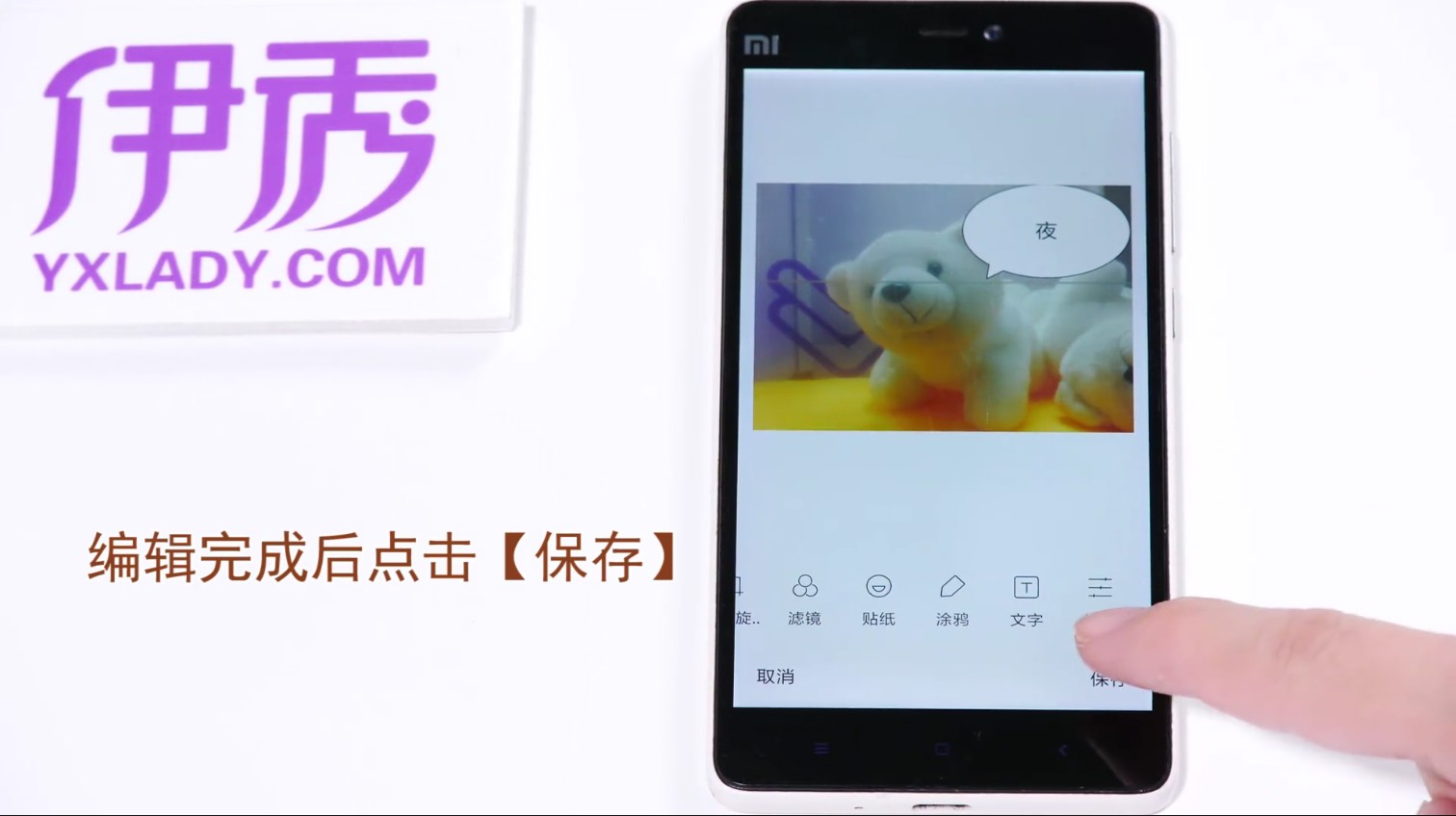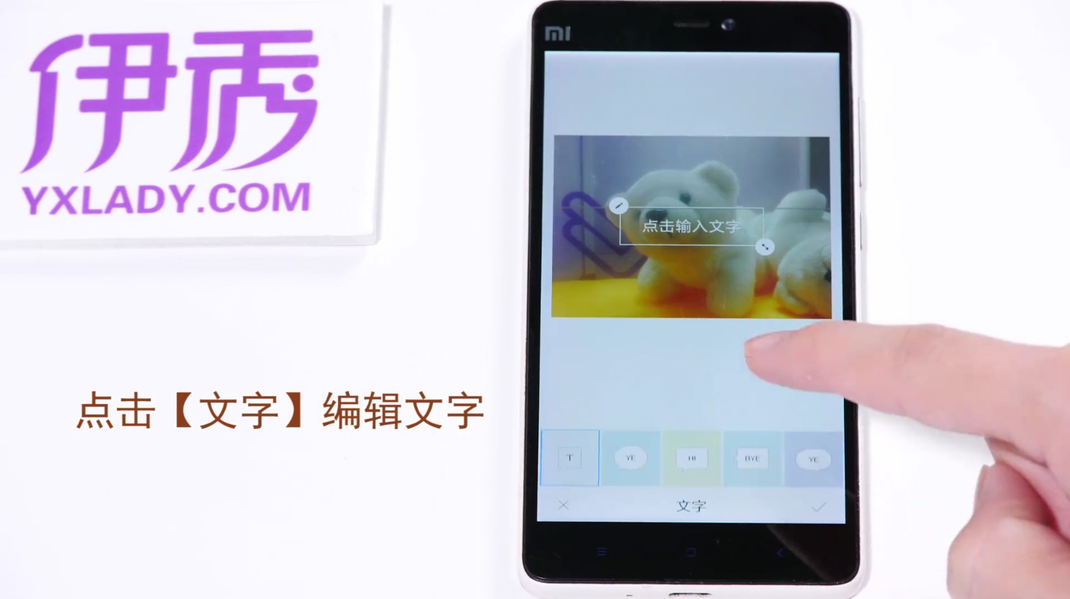 打开【相册】选择一张照片,点击【美化】编辑图片,点击【文字】编辑文字,输入文字编辑完后点击【保存】。