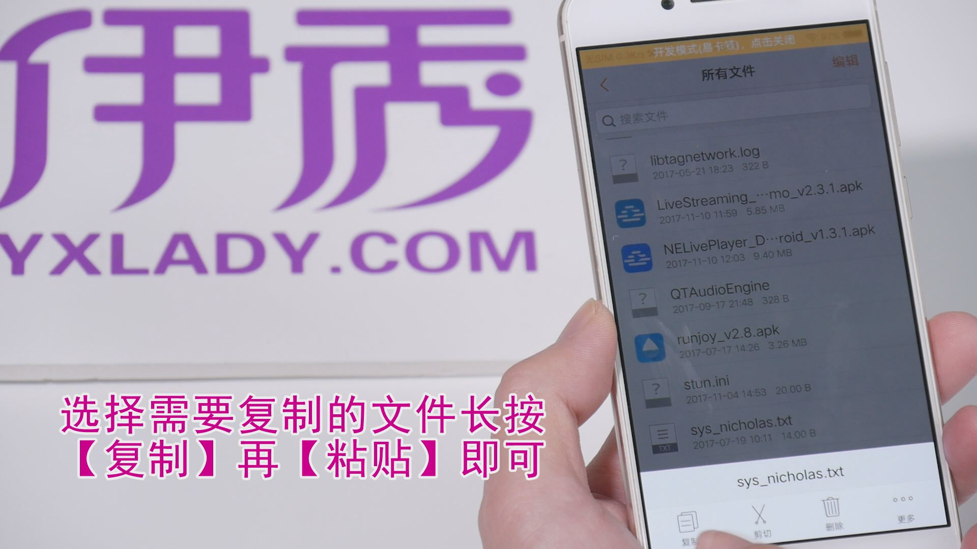 3.选择需要复制的文件长按复制再粘贴即可。