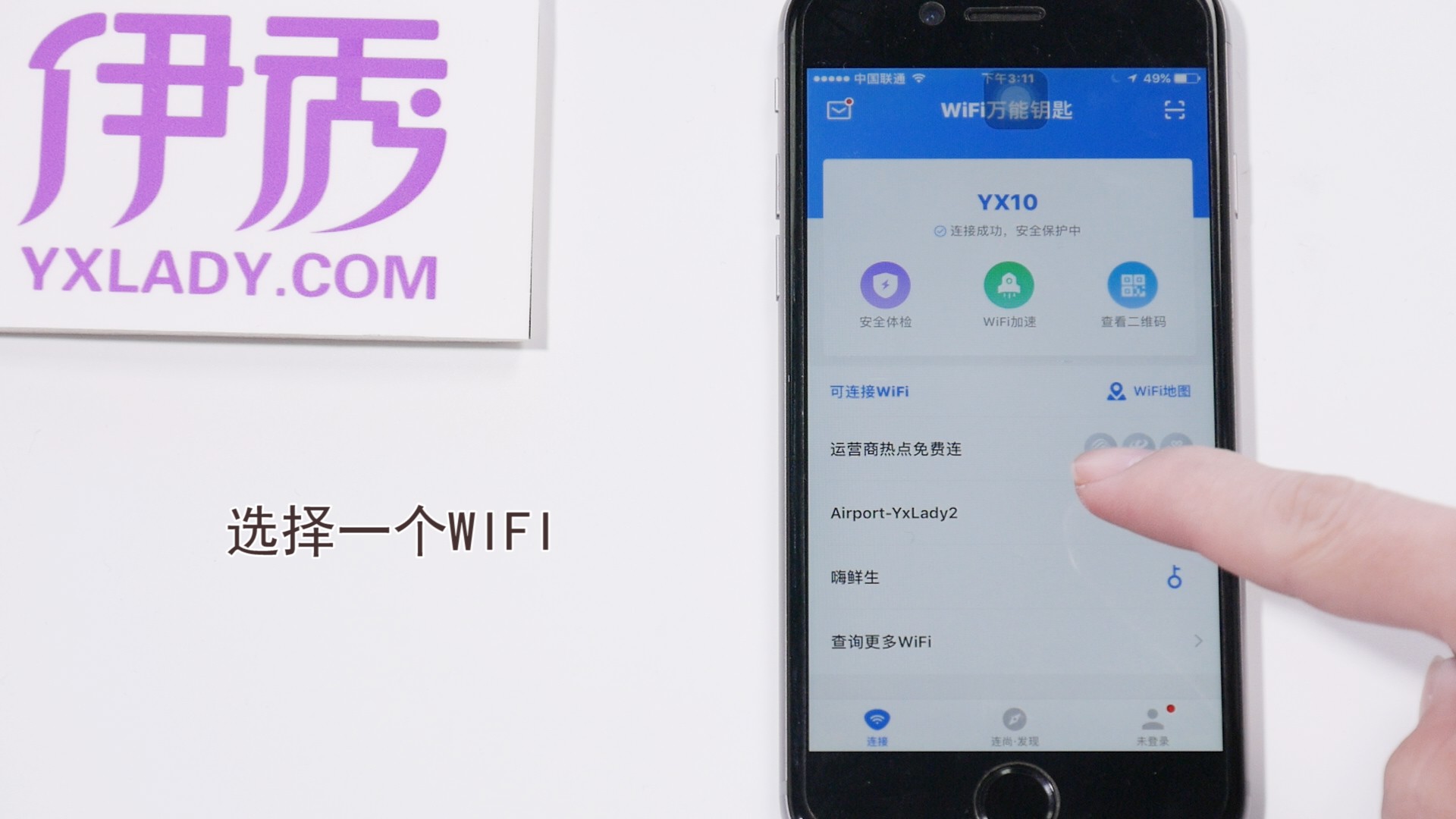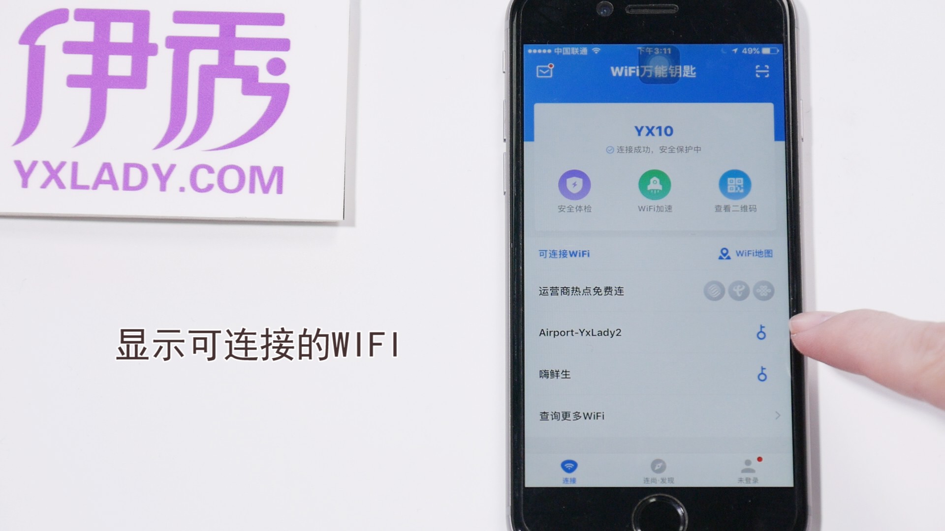 打开万能钥匙APP,点击【连接】,会显示可连接的WIFI,选择一个WIFI。