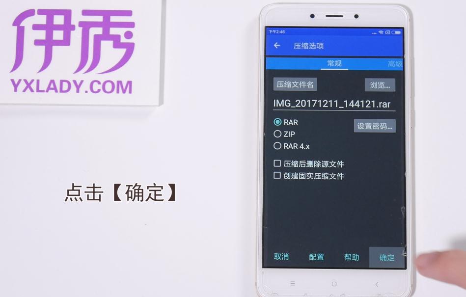 使用压缩包压缩图片,打开“RAR”软件,选择并查看图片,勾选需要压缩的图片添加至压缩选项,点击“确定”,出现RAR就是被压缩的文件了。
