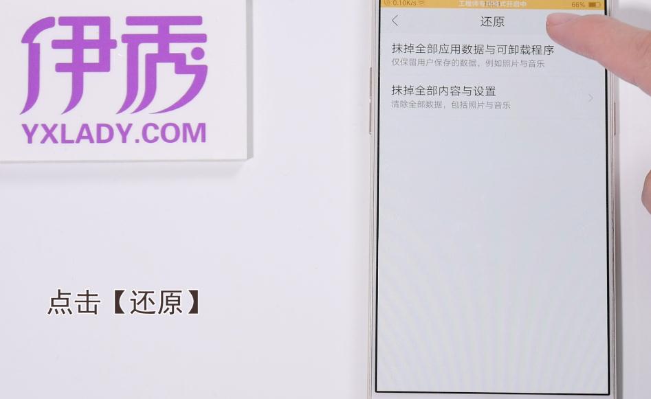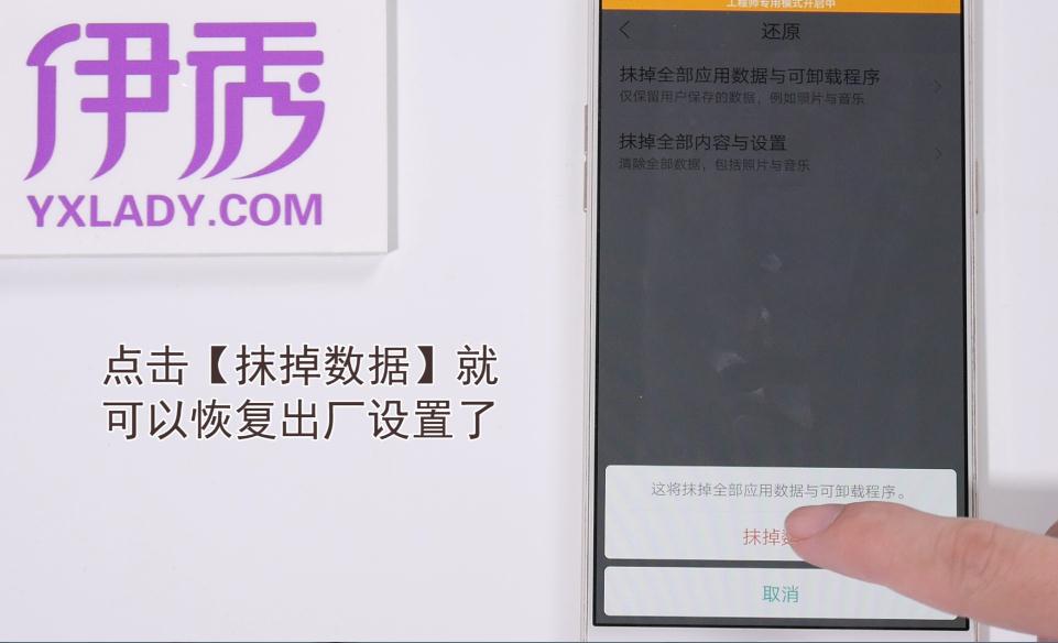 手机打开“设置”,点击“其它设置”,点击“还原”,点击“抹掉数据”就可以恢复出厂设置了。
