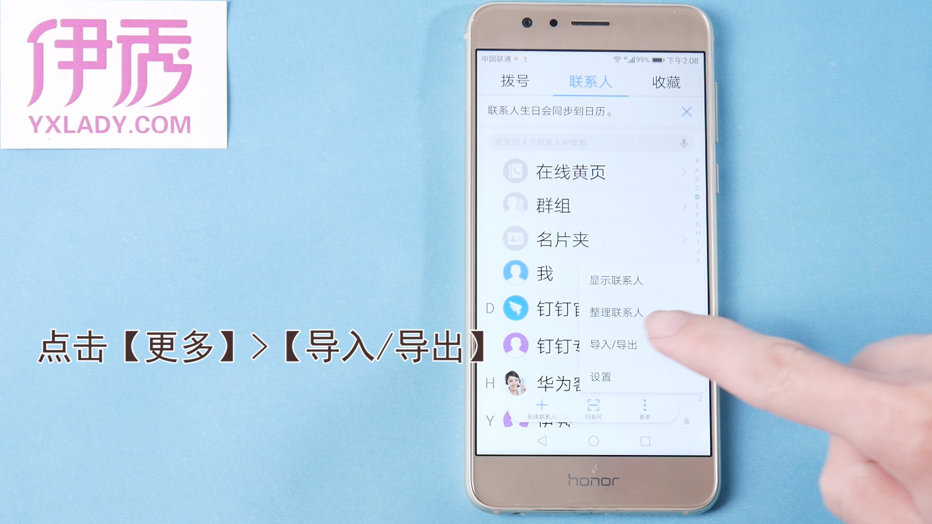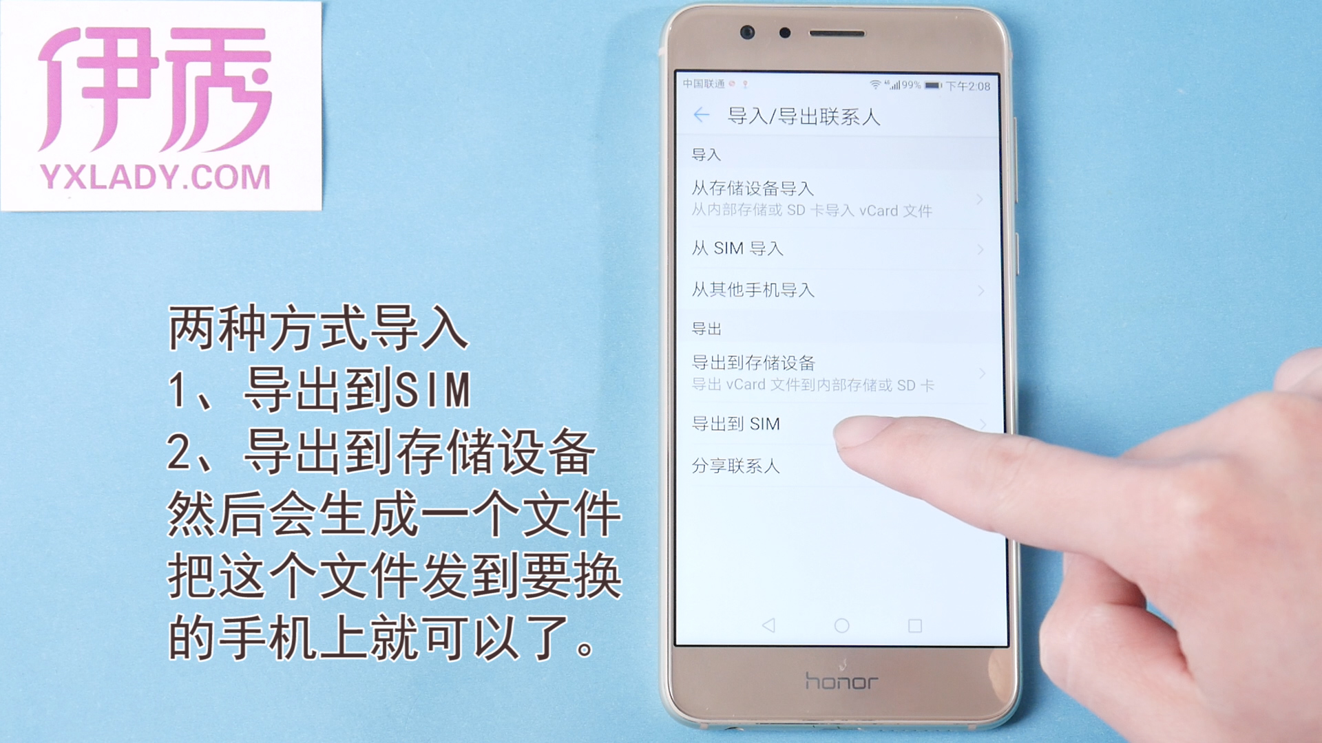 两种方式导入1、导出到SIM2、导出到存储设备然后会生成一个文件,把这个文件发到要换的手机上就可以了。