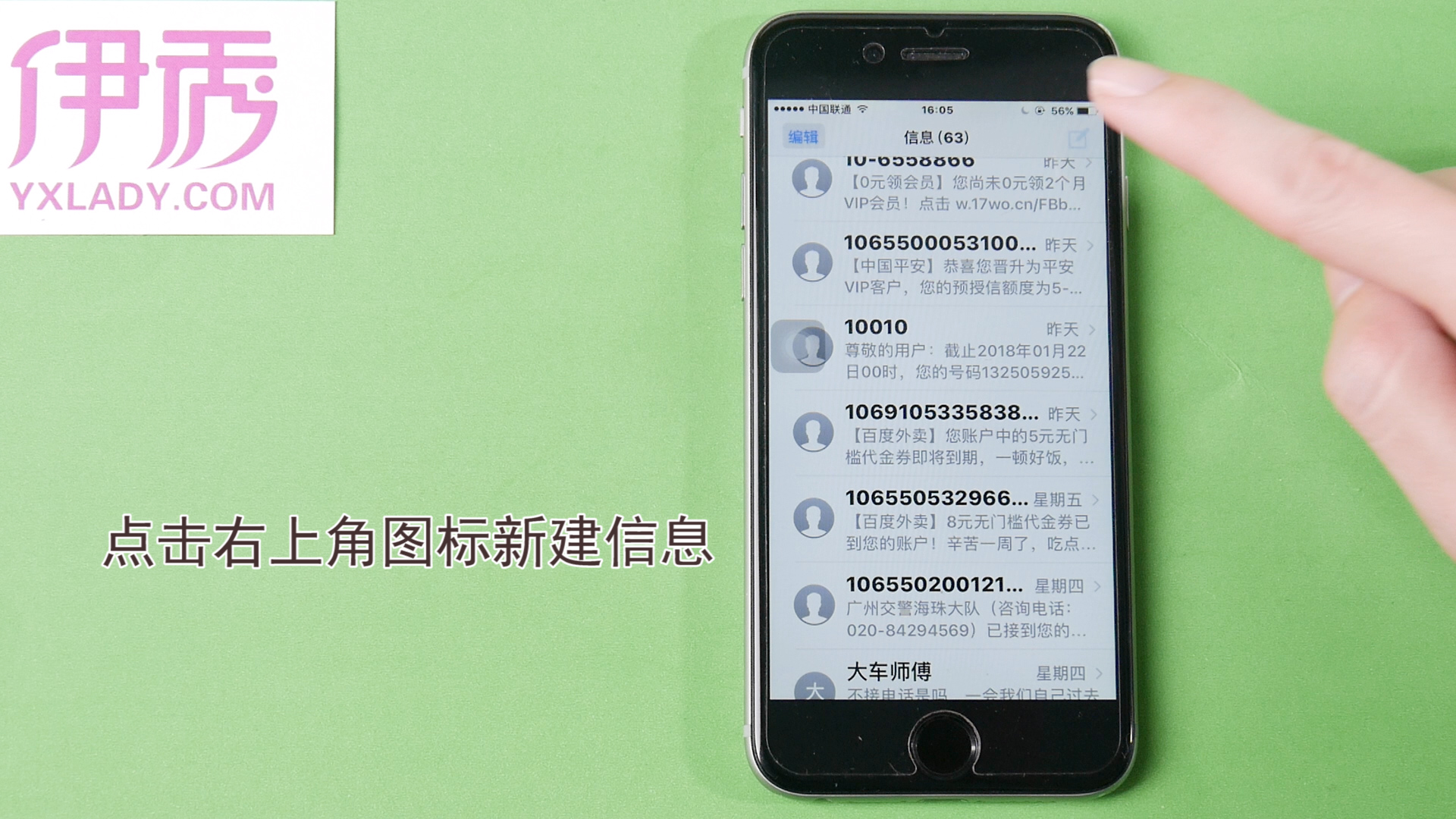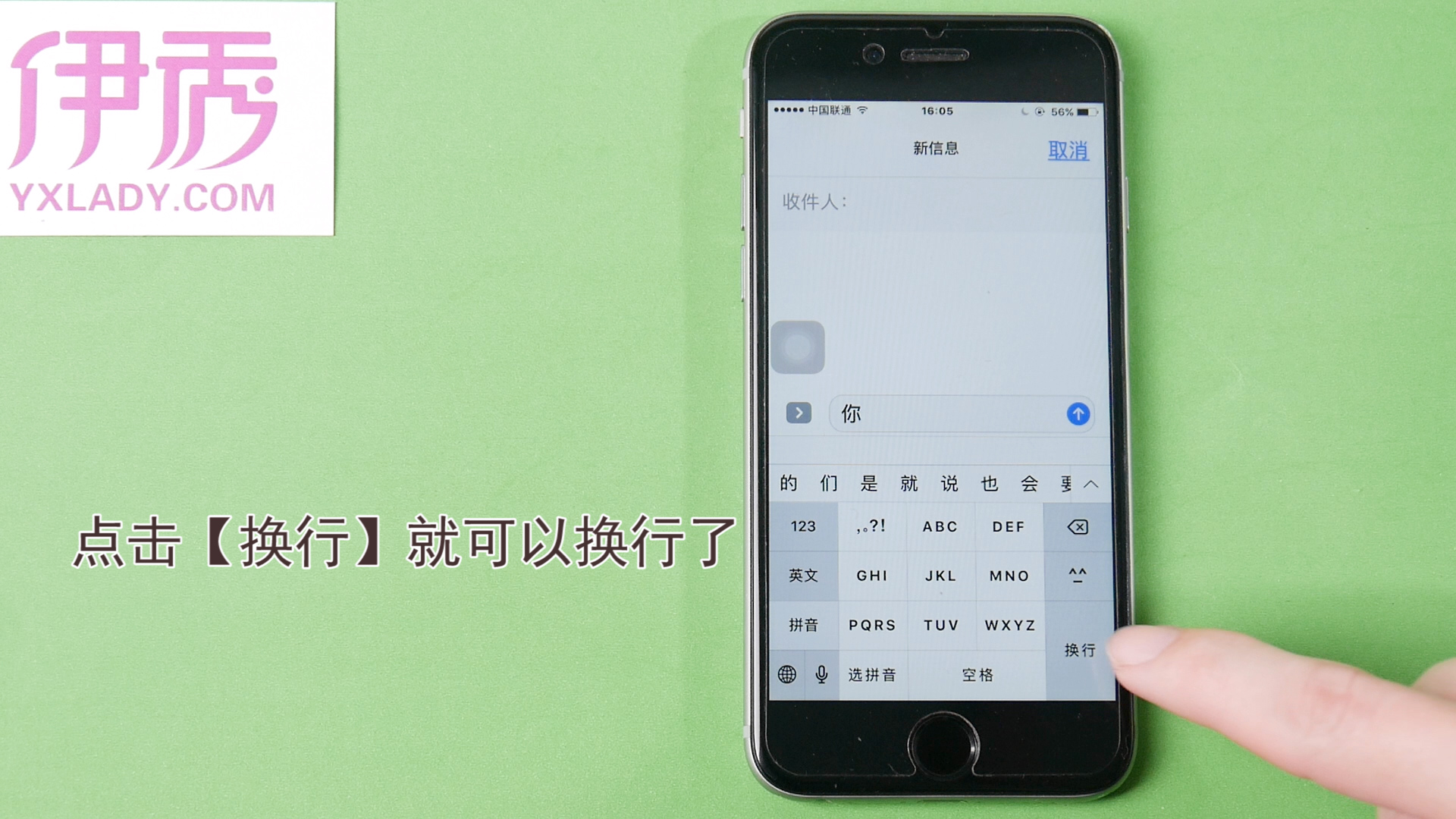 点击【信息】,点击右上角图标新建信息,输入信息内容,点击【换行】就可以换行了。