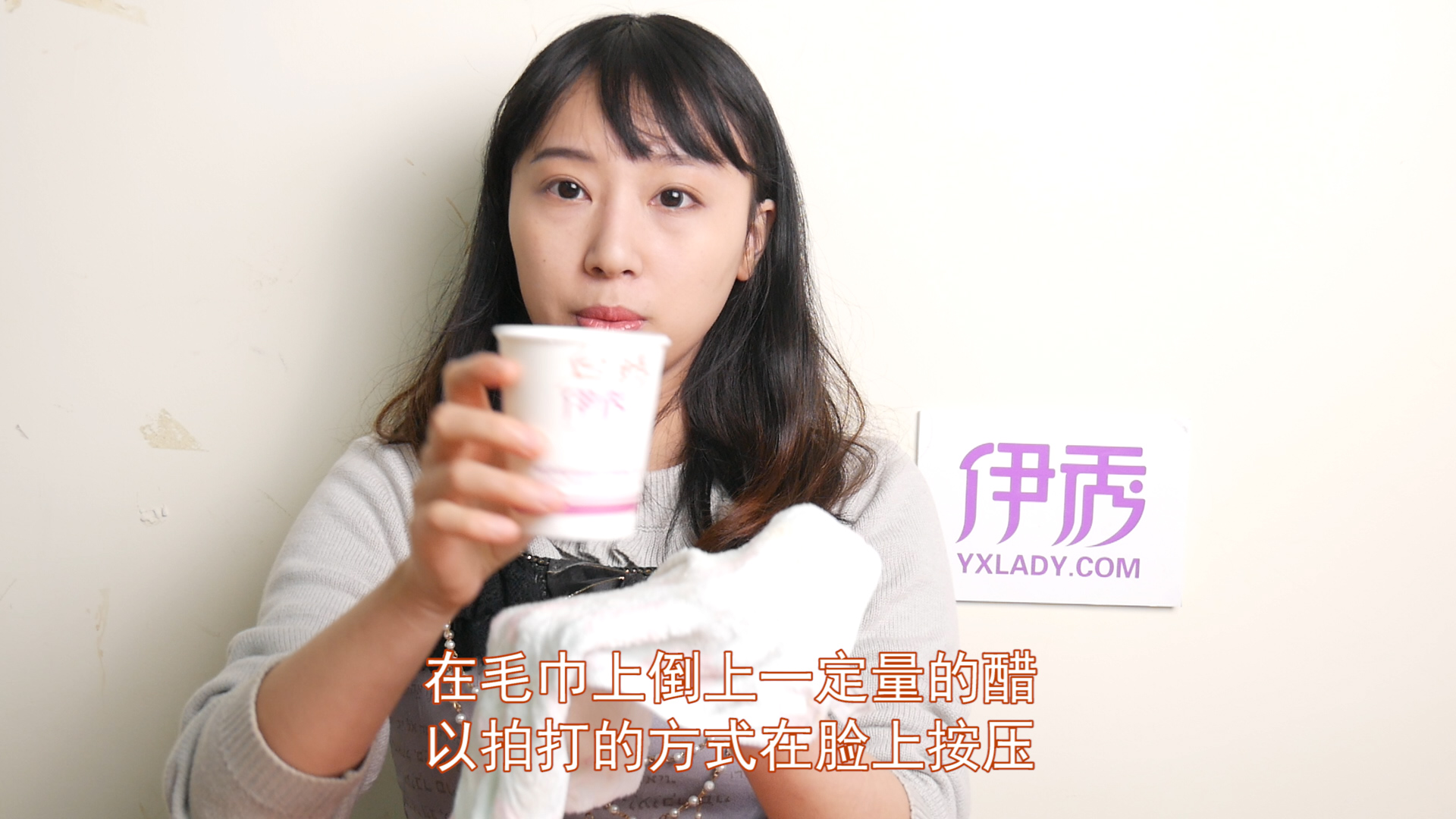 3.或者是将毛巾浸湿,在毛巾上倒上一定量的醋,以拍打的方式在脸上按压.