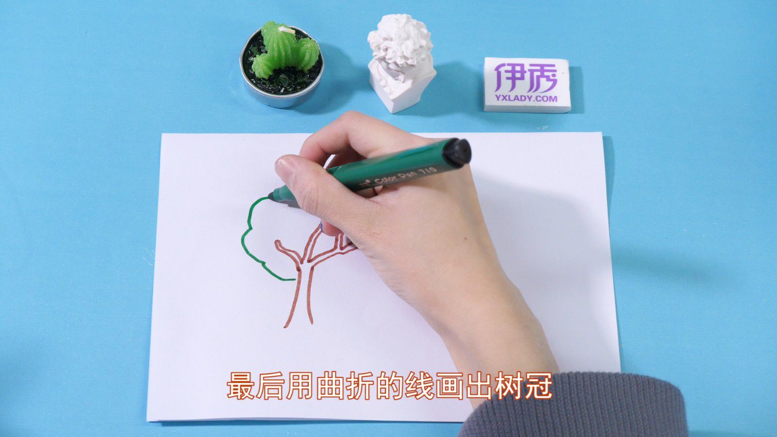 最后用曲折的线画出“树冠”