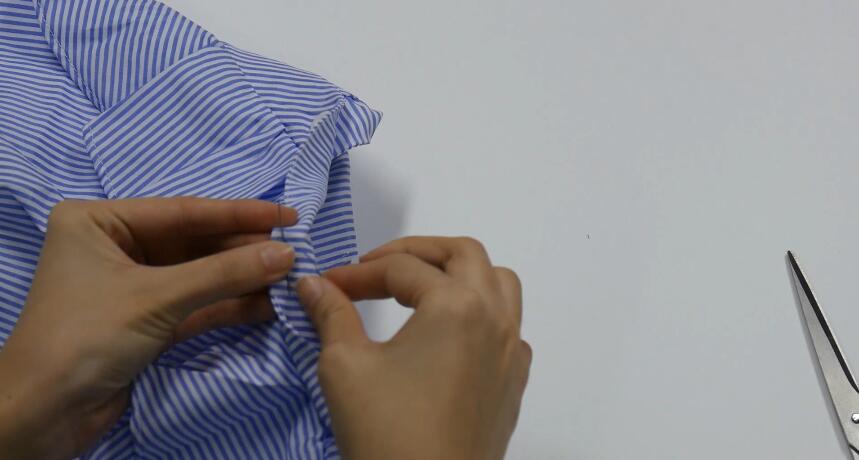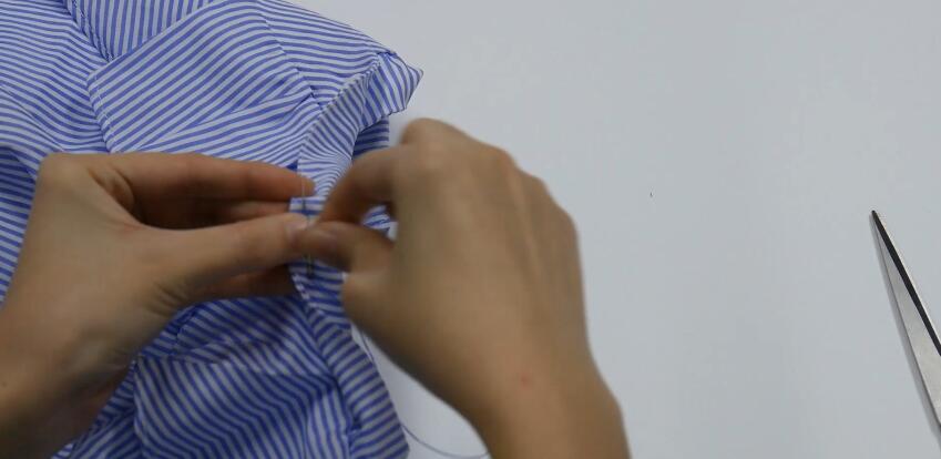 步骤三:线扯出来,剪刀剪掉。