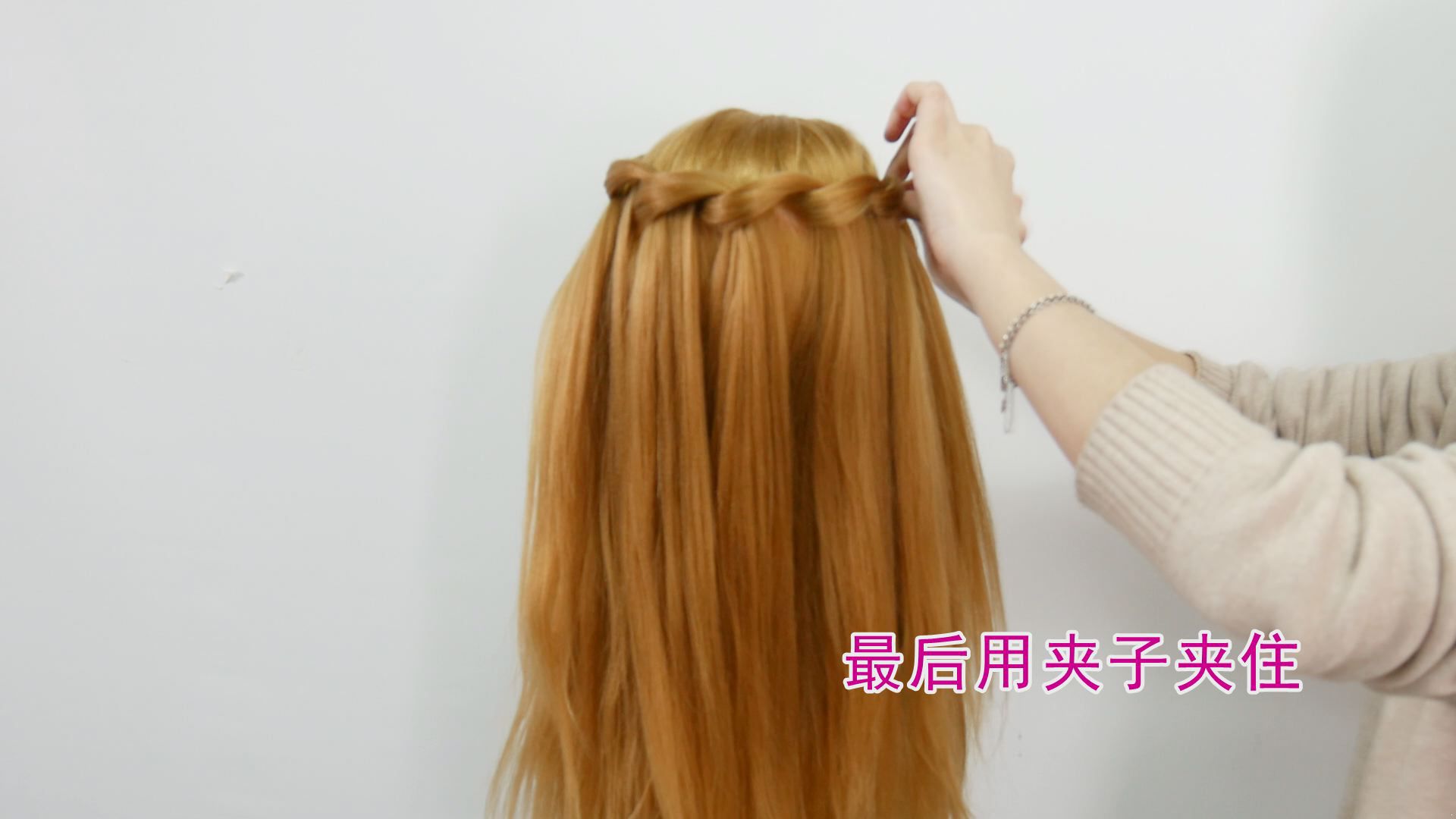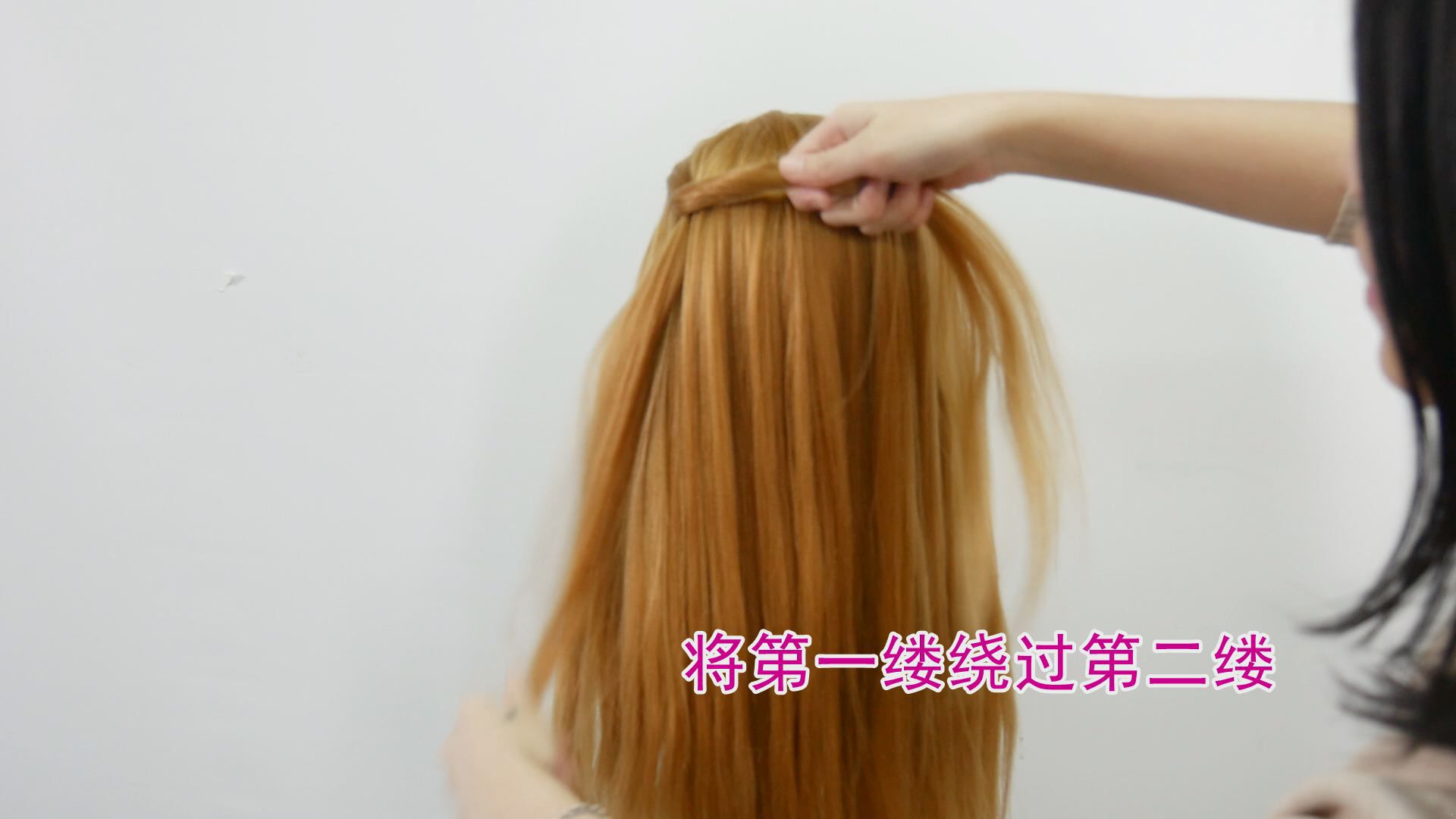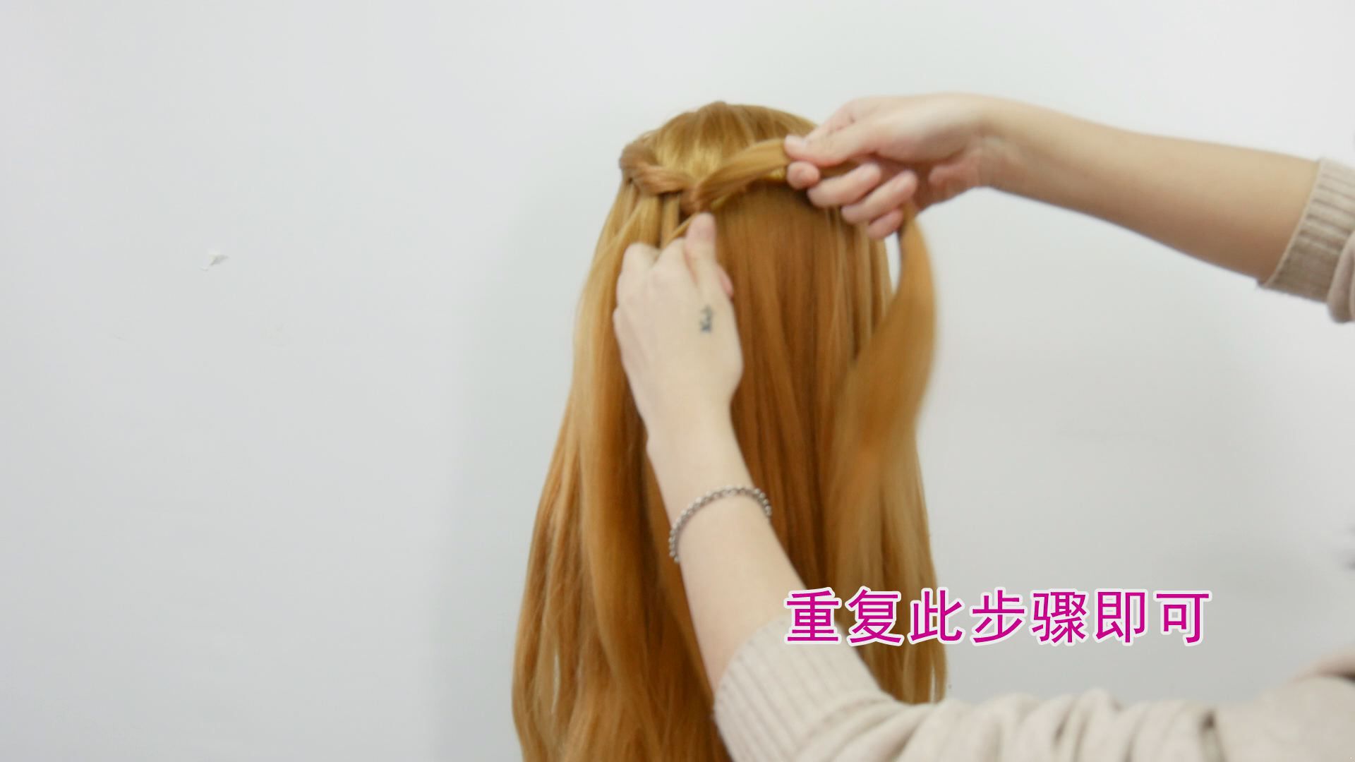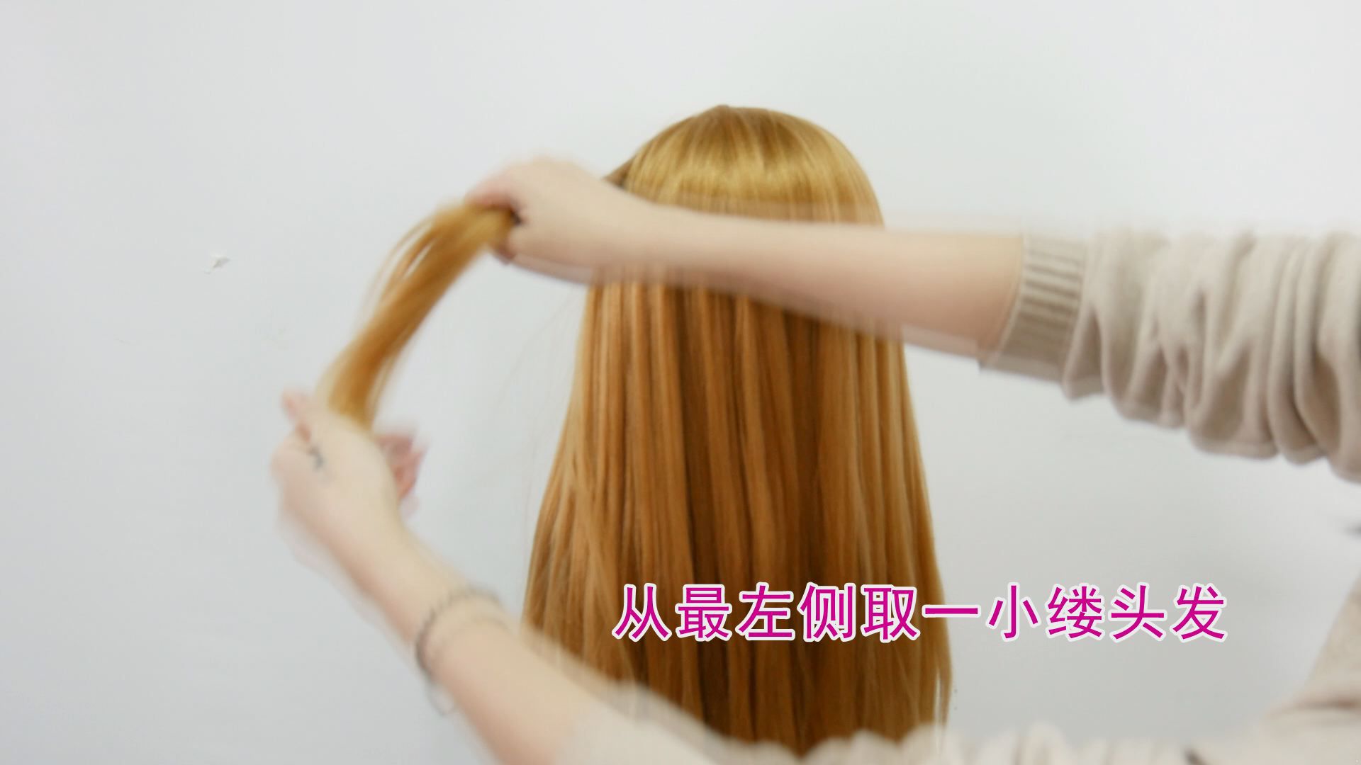 从最左侧取一小缕头发,再往后取第二缕。将第一缕绕过第二缕,重复此步骤即可,最后用夹子夹住。