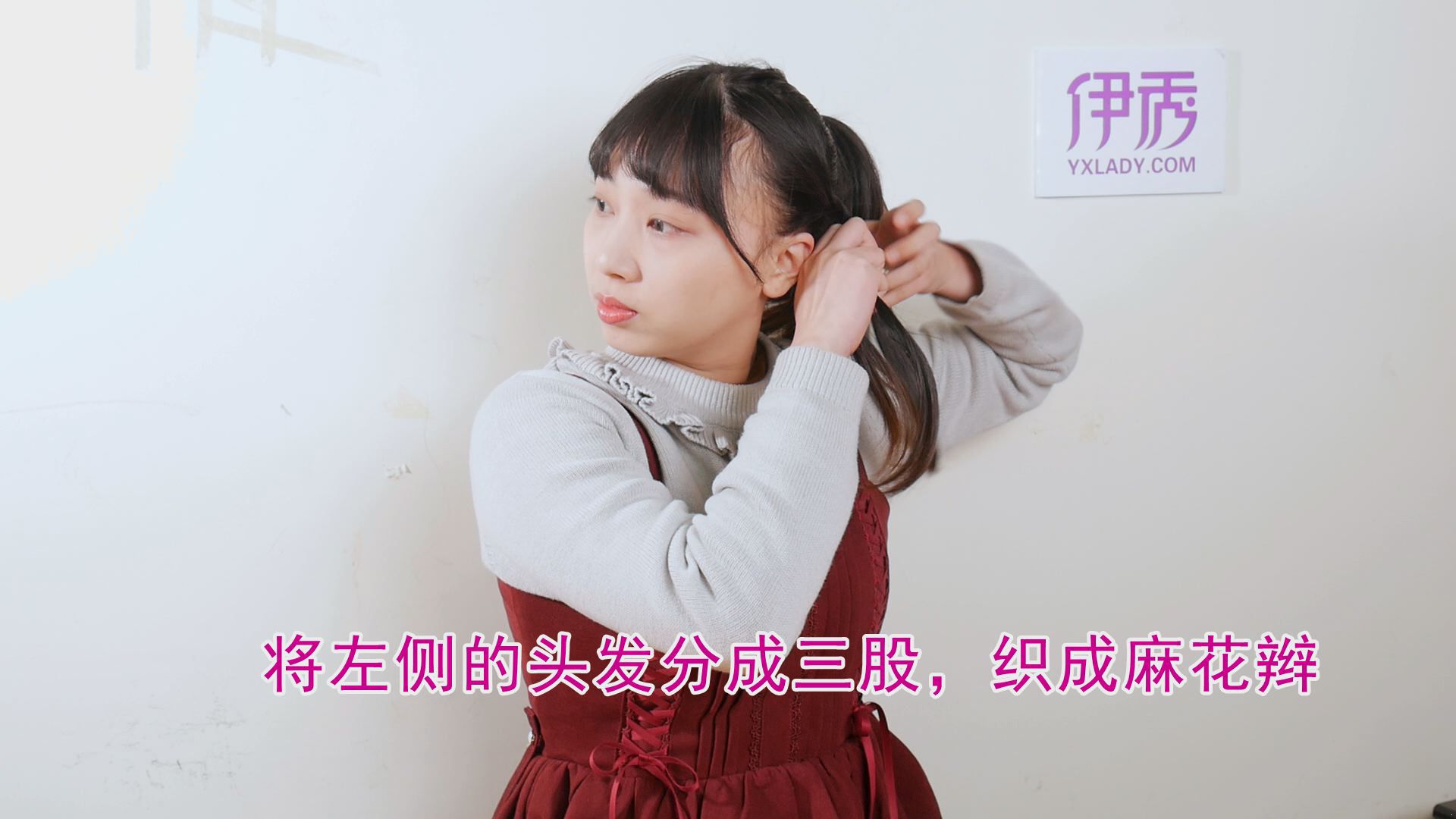 1.将头发扎高,留一缕左侧的头发。2.将左侧的头发分成三股,织成麻花辫。3从下往上围着马尾辫绕一圈。4最后用夹子固定住即可。