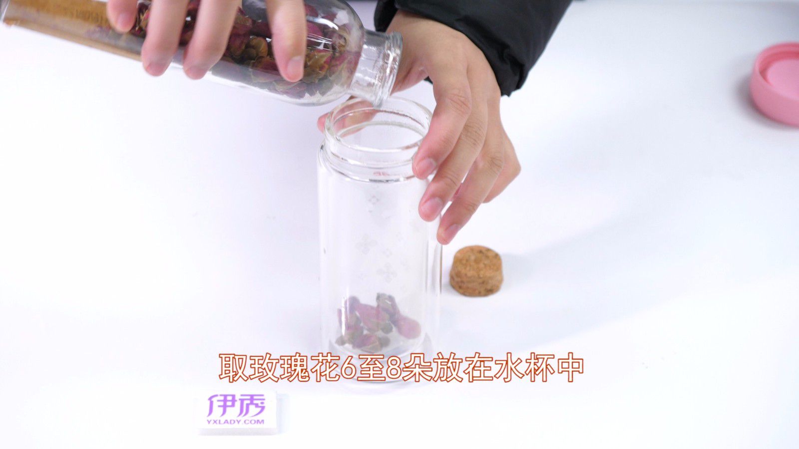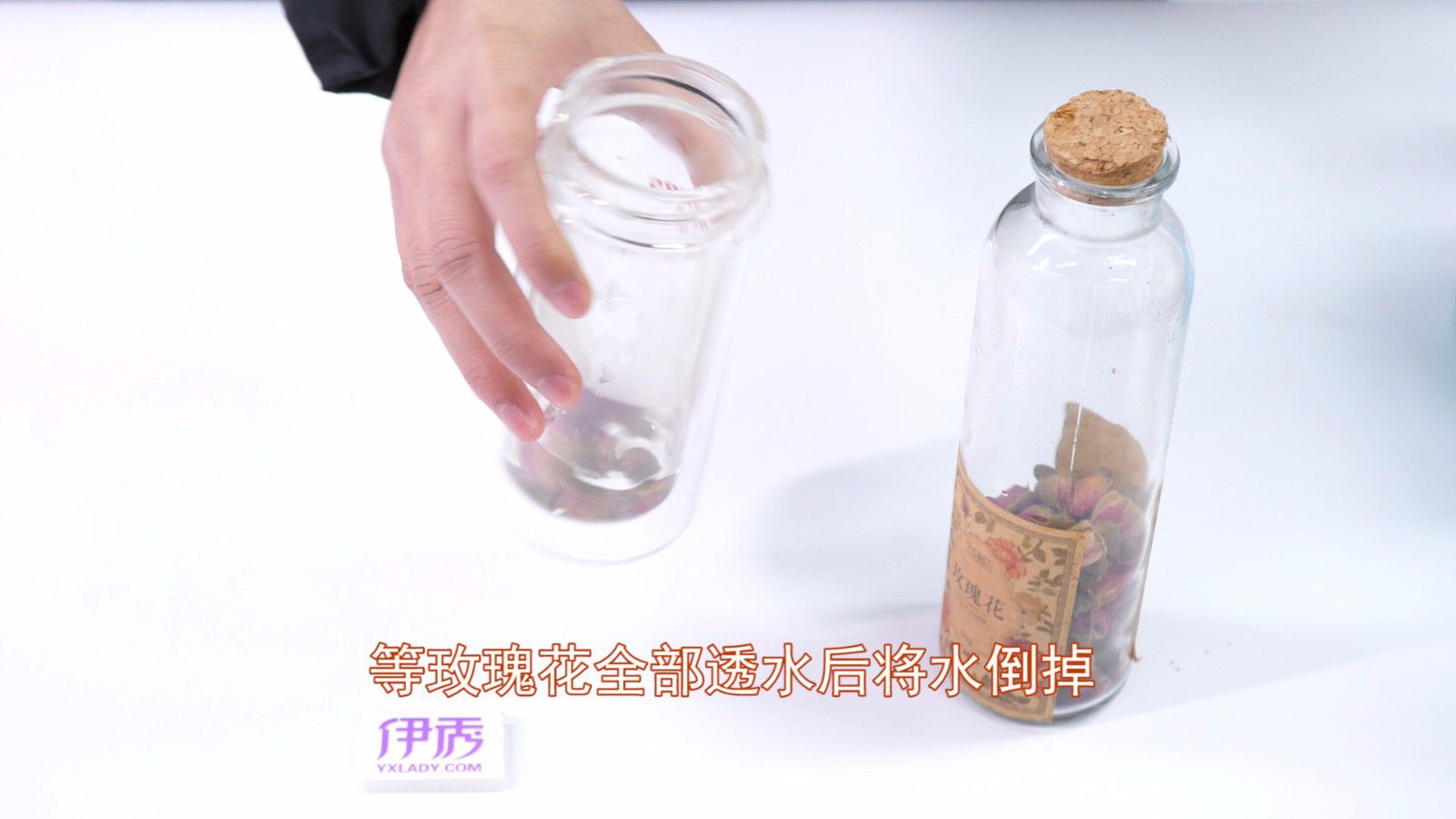 取玫瑰花6至8朵放在水杯中,先用少量的温水进行清洗。