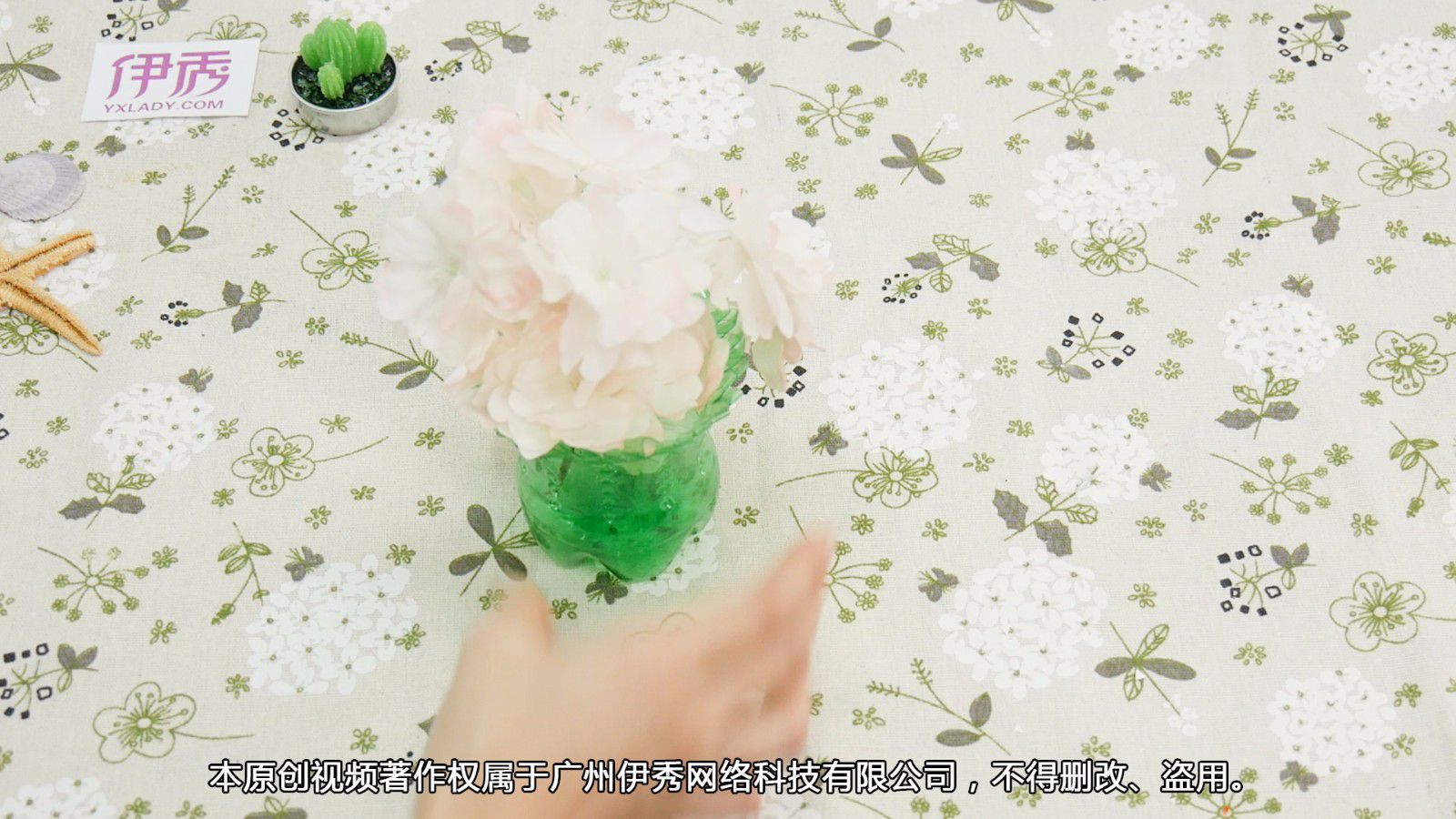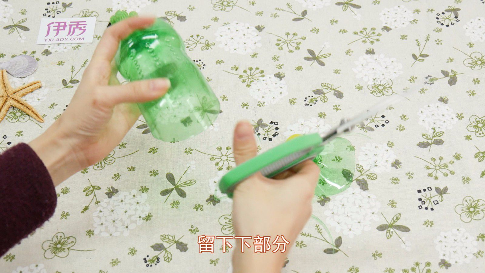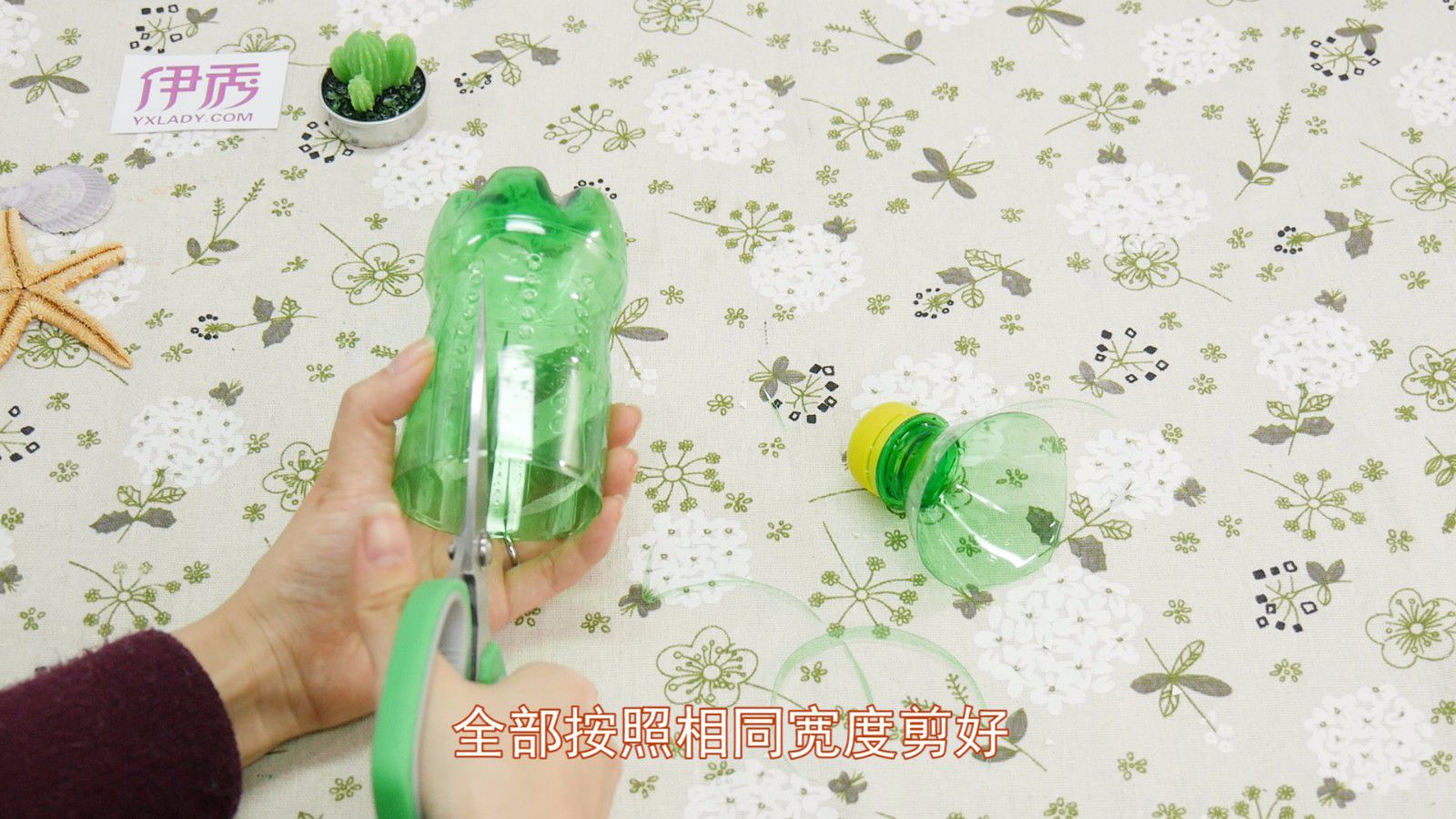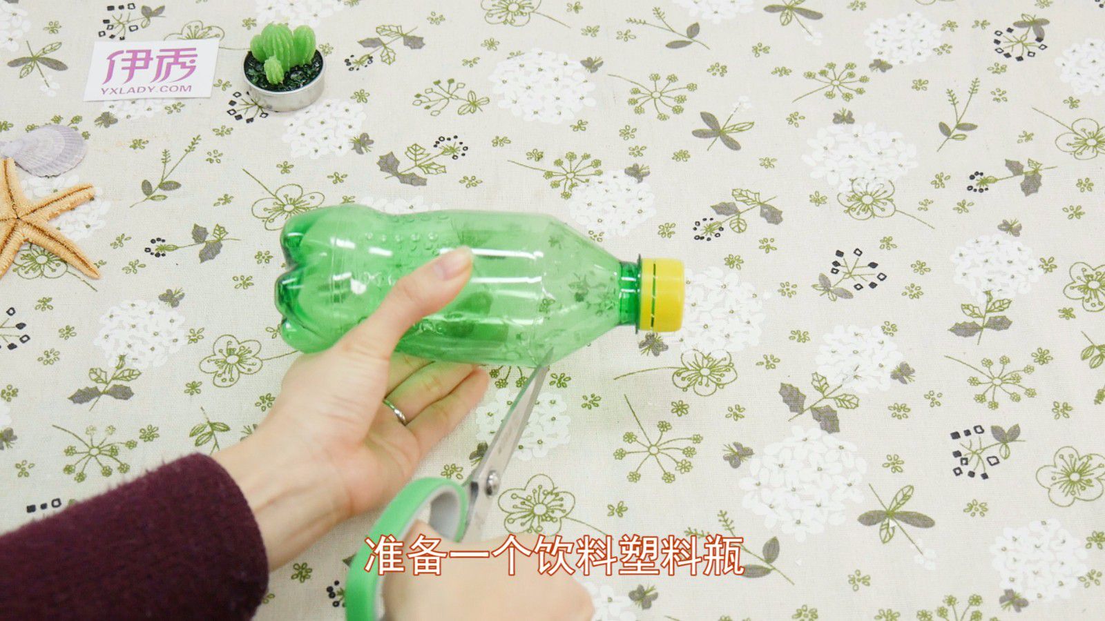 准备一个饮料塑料瓶,用剪刀将饮料瓶上部剪开,留下下部分,用剪刀竖着剪出竖条形状,全部按照相同宽度剪好,剪好后将瓶身向下扣,让细条全部展开,开始编花,如视频所示方法,细条全部弄好后就完成了。