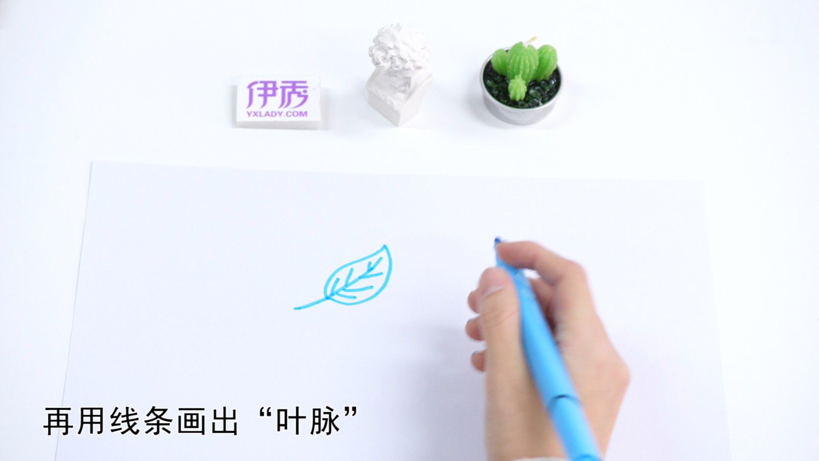 再用线条画出“叶脉”。