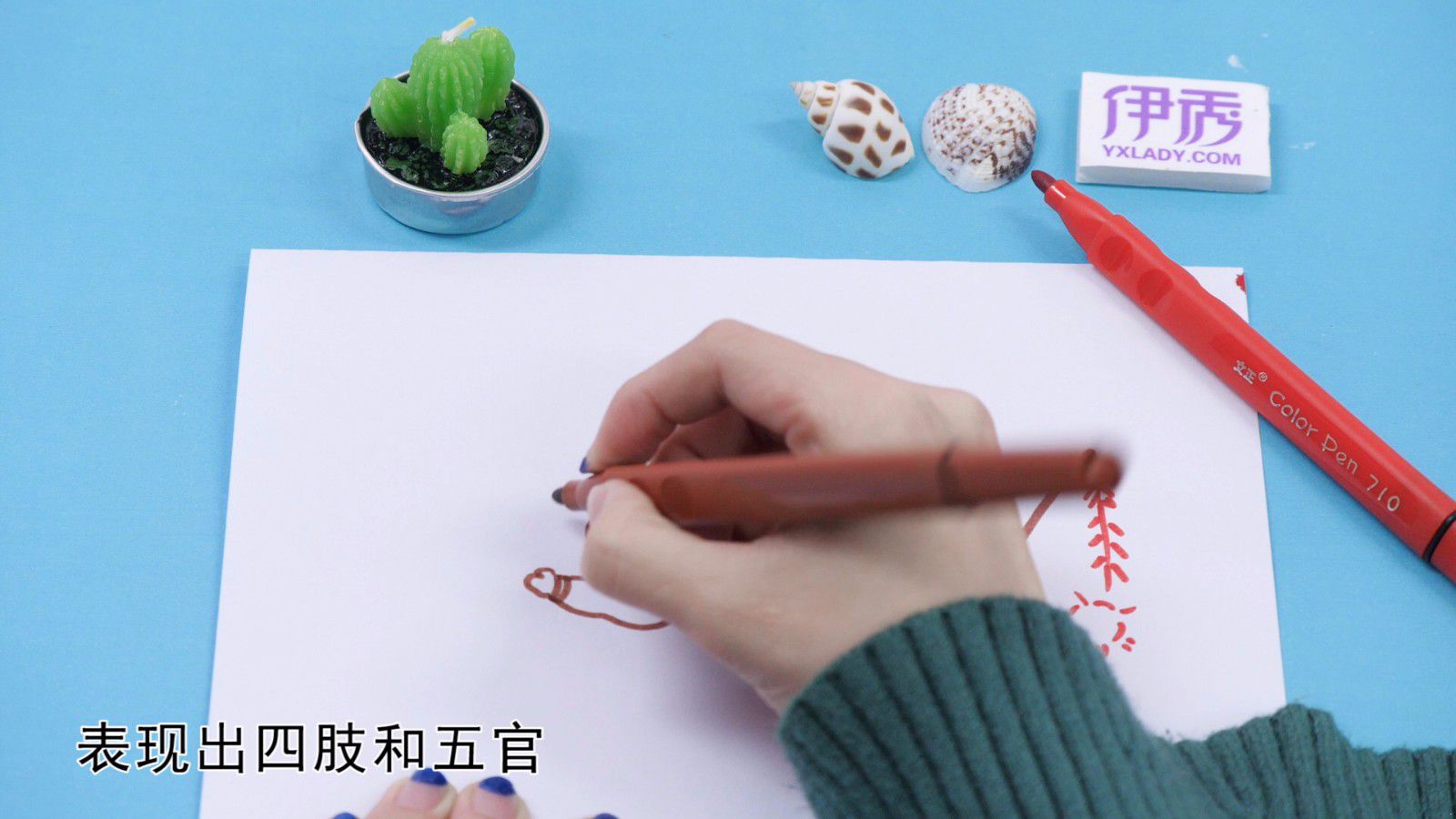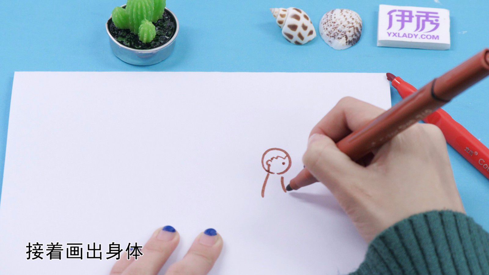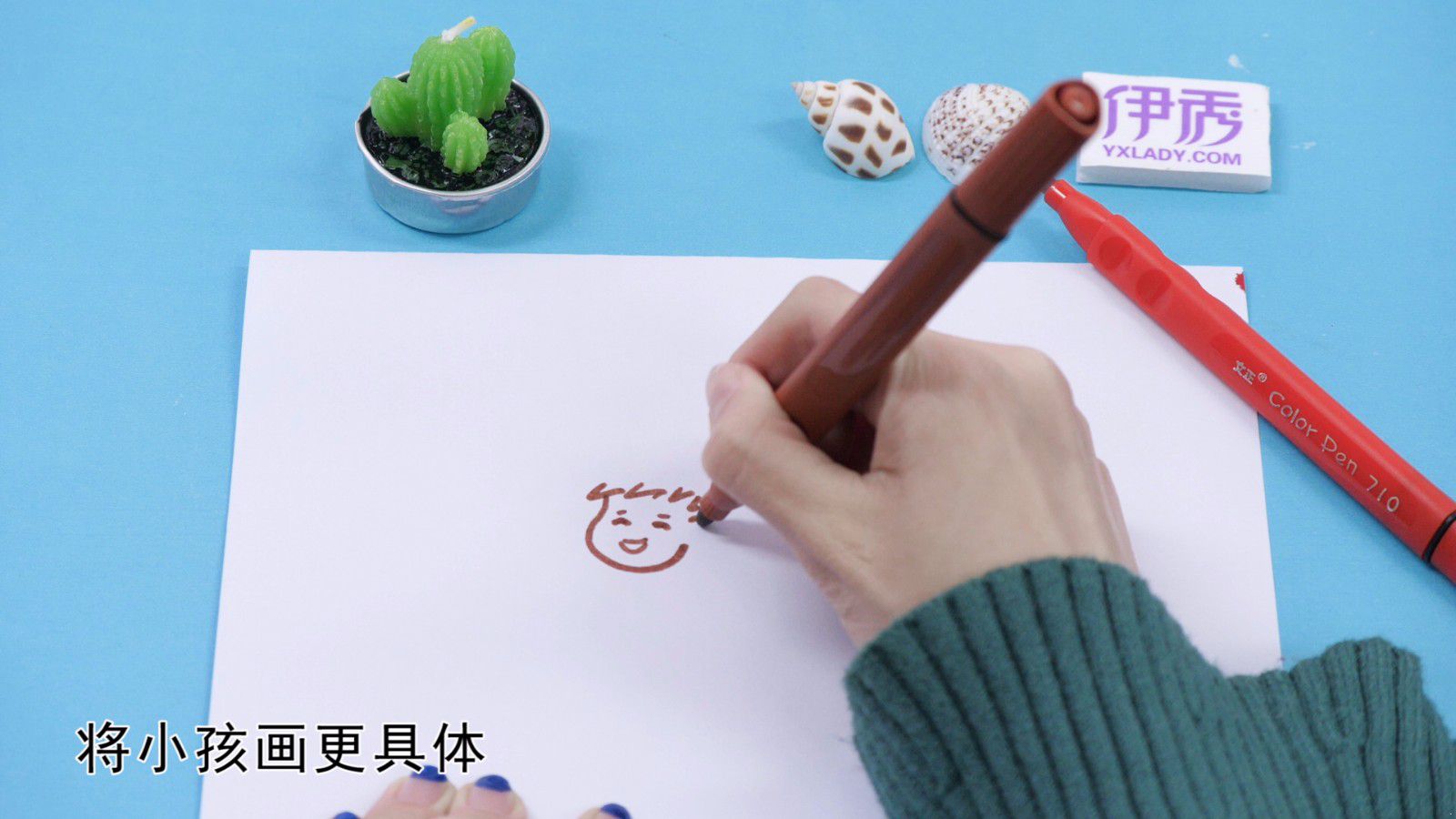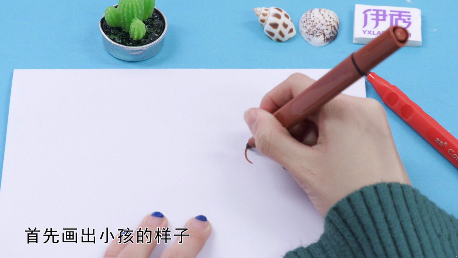 首先画出小孩的样子,折线画出头发,画侧面可以只点出一边的眼睛,接着画出身体,用线段画出四肢,画长线段作为棍子,用同向下的小线段画出鞭炮,可以用线段画出炸开的效果。