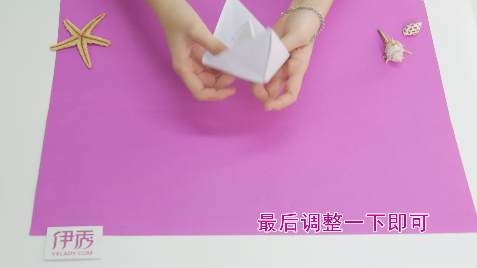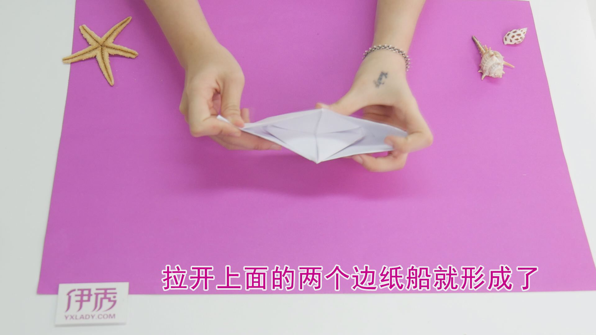 准备一张A4纸,将它对折再对折,打开沿着折痕往下折成三角形,把余下的两条边折上,把纸张从内部打开,两边往外折,再次从内部打开,拉开上面的两个边纸船就形成了,最后调整一下即可。