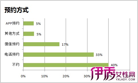 2015年,移动互联网渗透到一线城市居民生活的方方面面,各类移动应用对美业消费者的消费习惯有很大的改变。近6成的消费者会选择提前预约,其中,采用传统电话预约方式的消费者占33%;选择微信和APP预约的消费者比例异军突起,合计已超过20%。
