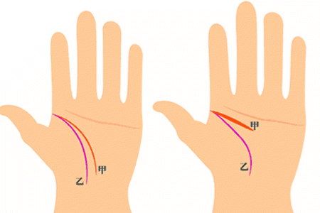 智慧线与生命线相交,又有许多状况。如果你是图一的状况:相交之处起端与生命线重叠大概二公分,并且尾端长到尾指下方,那么你性格沉稳、较有头脑、做事周到。结婚后将会是个温柔的另一半并且能与另一半互相帮助共同建造美好的家庭,甚至能在事业上相互鼓励!