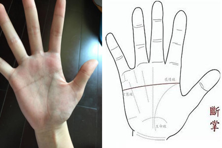 断掌指的是手掌的纹路中的智慧线与情感线融合成了一条线。断掌自古以来都被称为是不幸的象征,尤其是断掌女人的命运总是以悲剧收场,或是在通往幸福的路上会比常人遭遇更多的磨难。