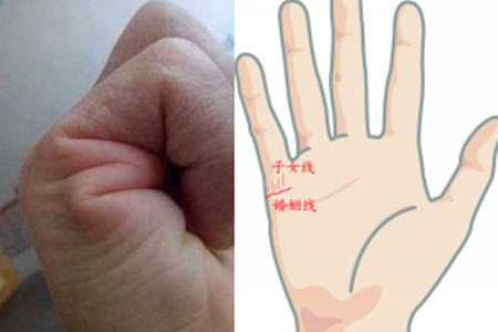 再来看看小指,有的说法是,小指短小且基位低,则儿女很少,甚至没有儿女。如果你的感情线旁有很多细线,那么也说明你的儿女很少或者没有。通过这些纹线,还能看见孩子初期的身体健康状况。