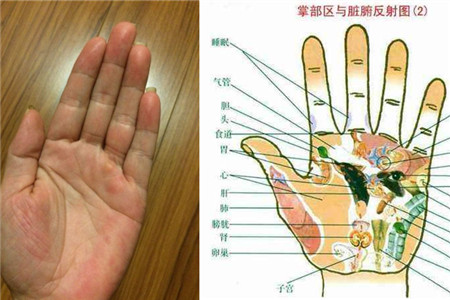 一般大家看手相算命,都会有男左女右的说法,在掌纹医学里面不是这样区分的,不同的内脏对应的手也不同,脾胃病看的是左手掌纹,肝胆病看的是右手掌纹,其他的疾病看的地方也不同,这个要比看手相复杂很多,如果说看手相是迷信,那掌纹医学就是科学的。