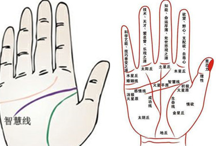 今天我们来讲一下智慧线。智慧线位于手掌的中央,倾斜状的走向拇指与食指之间。岛纹就是指一些分布在智慧线上像小岛状的纹路,不同的岛纹分布情况有不同的寓意。
