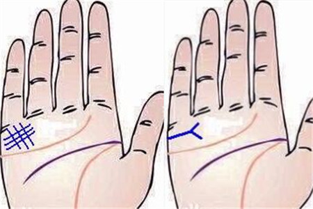 在小拇指下面位置上会出现几条比较短的线,较长的和清楚的那条就是我们的婚姻线。要知道一个人的婚姻如何可以从婚姻线上着手。要注意,查看这条线有没有断裂的地方,或者是出现分叉的问题。如果出现这些情况的话,那么婚姻生活很难得到圆满,夫妻之间会发生争吵,婚姻会以失败而告终。出现断裂几次,分叉多少条,就说明其的一生要有多少次婚姻。