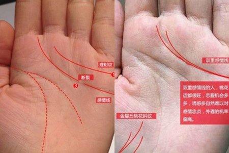 据说感情线是手掌上很粗的那根线,你的感情线越粗越长,就代表你的感情经历越丰富。感情线下面的“人”字形线,便是你的财富线和健康线,这三条线都是人类非常宝贵的一种东西。其实,你也可以自己去看看自己的手相,好好“预测”一下未来吧。