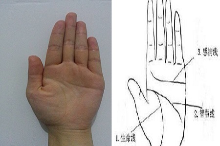 相信爱情线也是不少人关注的掌纹。感情线就是小指下方向食指延伸的线路。如果爱情线一直延伸到食指下方,说明这段爱情比较注重精神;如果是在中指下面停止,则说明这段爱情比较注重物质。如果感情线较深,这说明这个人感情方面比较细腻;感情线较粗,这说明此人感情较为豪放。