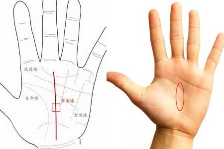 首先我们来看看哪一条是事业线,无论是川字掌还是人字掌,事业线都是掌心下方向上面延伸到中指下端的一条线纹。事业线代表着个人的事业运与发展运势。事业线会随着时间及个人的运势而变化,所以事业线并不是一直存在的,也并不是一直不会有,那事业线该怎么看?左右应该看哪一只手?30岁前的看左手,30岁后的看右手。