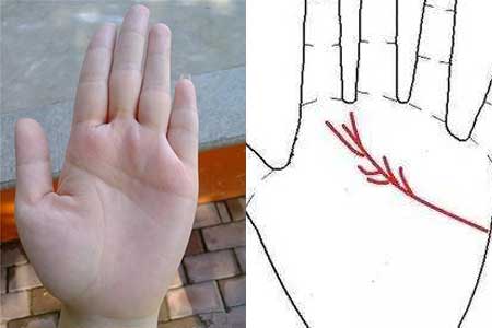 如果在首端三叉方向向下,代表着你的感情出现了问题,这种问题是发生在自己身上而非对方,大部份因为疑心重,想太多而导致分手。如果分叉线向上,代表着近来与对方感情很好,又或者说近来人缘很好,得到重要长辈的痛爱。