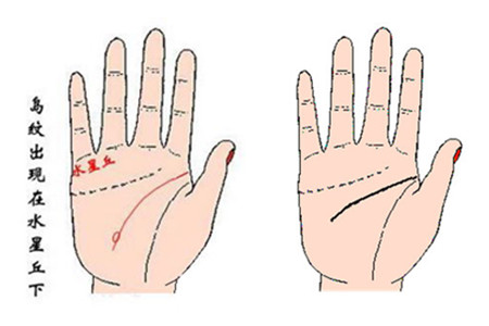 第二,出现在水星丘下方的岛纹常常意味着神经易衰弱、若遇到不如意之事容易歇斯底里。