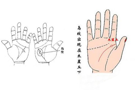 第三,智慧线上若出现两个岛纹,则表明此人容易患记忆衰弱、自私刚愎。第四,出现在木星丘下方的岛纹表示该人营养不良、头痛浑噩,容易为情寻死。