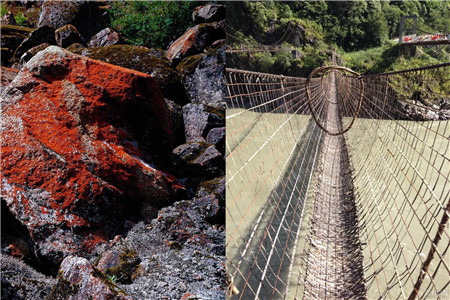 墨脱的藤桥与溜索,那也是我们值得一观之处。藤索桥由白藤绑定而成,在桥下那就是水击石穿的湍流,暗礁遍布的江河,再望周围之景观,重山峭壁,这样一幅壮观的画面让我们的眼睛着是大开,游玩至此可得做好心理准备啊。